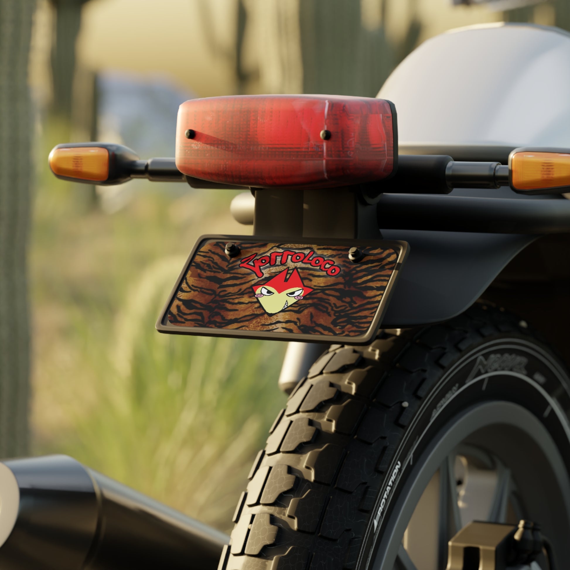 A Zorroloco erotic mini license plate for erotic people, featuring vibrant colors and a durable aluminum construction. This mini license plate is perfect for customizing your bicycle or motorcycle or adding flair to your garage wall. It's lightweight, glossy finish, and pre-drilled holes make it easy to display.